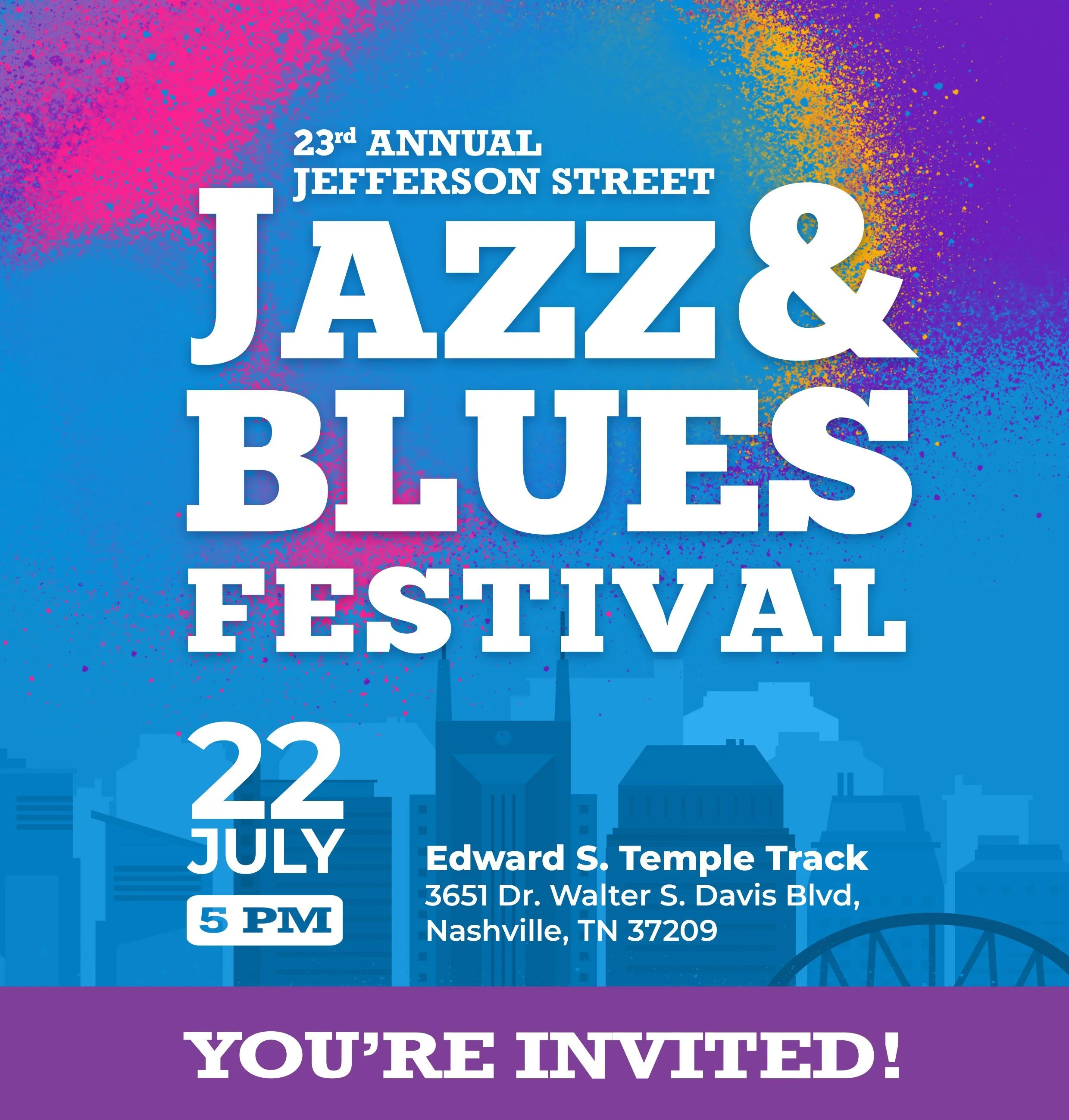 Join us at Tennessee State University's Edward S. Temple Track for a day of music, arts and food featuring local and national jazz and blues artists and food and retail vendors from the North Nashville community. Doors open at 4pm and performances begin at 5pm.