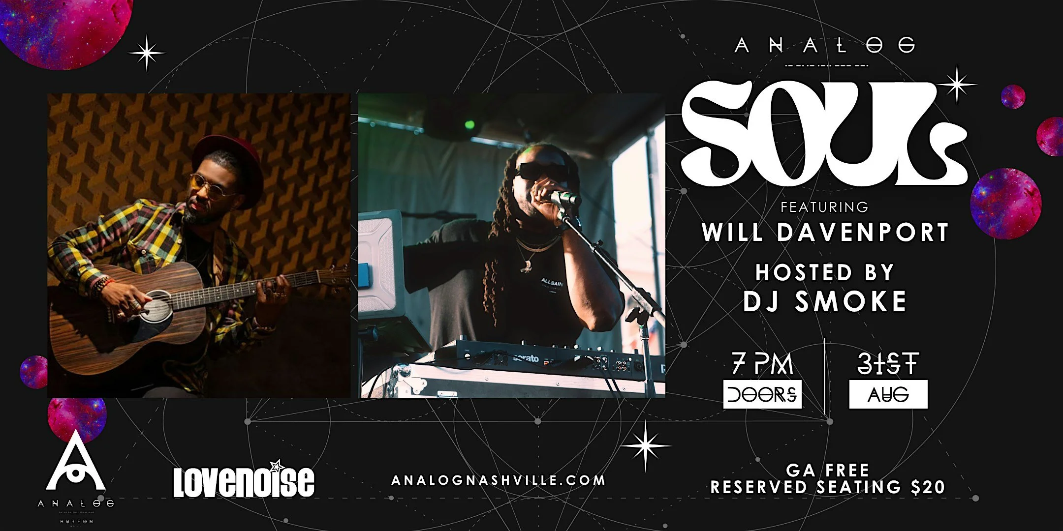 Join us for another installment of Analog Soul featuring Will Davenport and DJ SMOKE