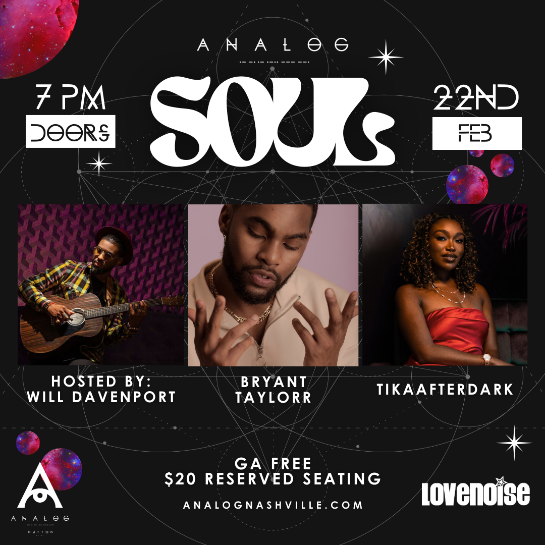 Elevate your week with Analog Soul, the ultimate show where the heartbeat of local and regional talent vibe on the Analog stage. Whether you’re a connoisseur of smooth grooves or a new fan of soulful melodies, our weekly show promises a rich tapestry of sound that will keep you coming back for more. From heartfelt ballads to foot-tapping anthems, we bring you the freshest sounds from one of the most unique venues in Nashville!