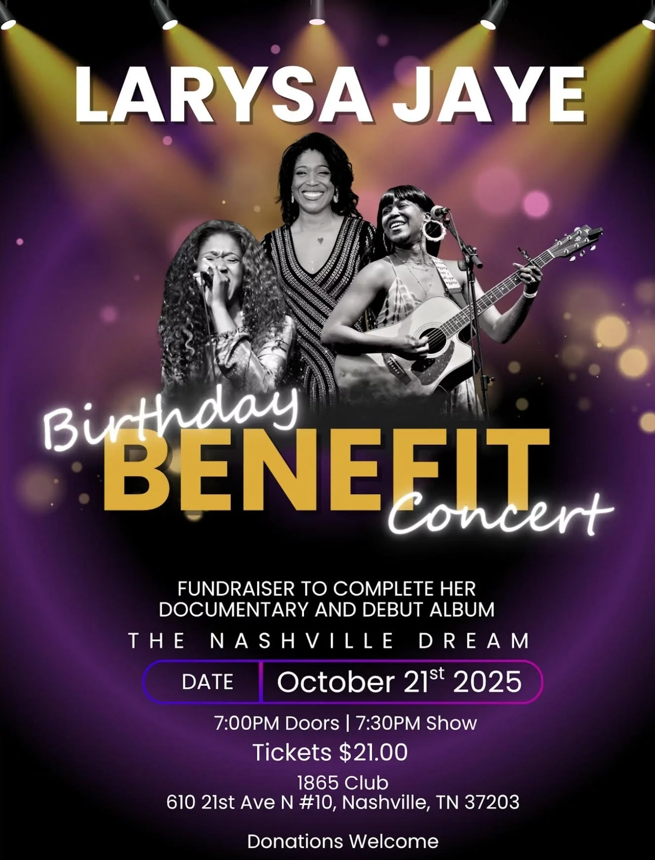 The Larysa Jaye Birthday Benefit is more than a concert; it is a movement to preserve her work and ensure her artistry continues to reach the world. Proceeds from this event will support projects that honor her creative legacy, including future music releases, documentary production, and related initiatives designed to share her story and keep her dream alive.