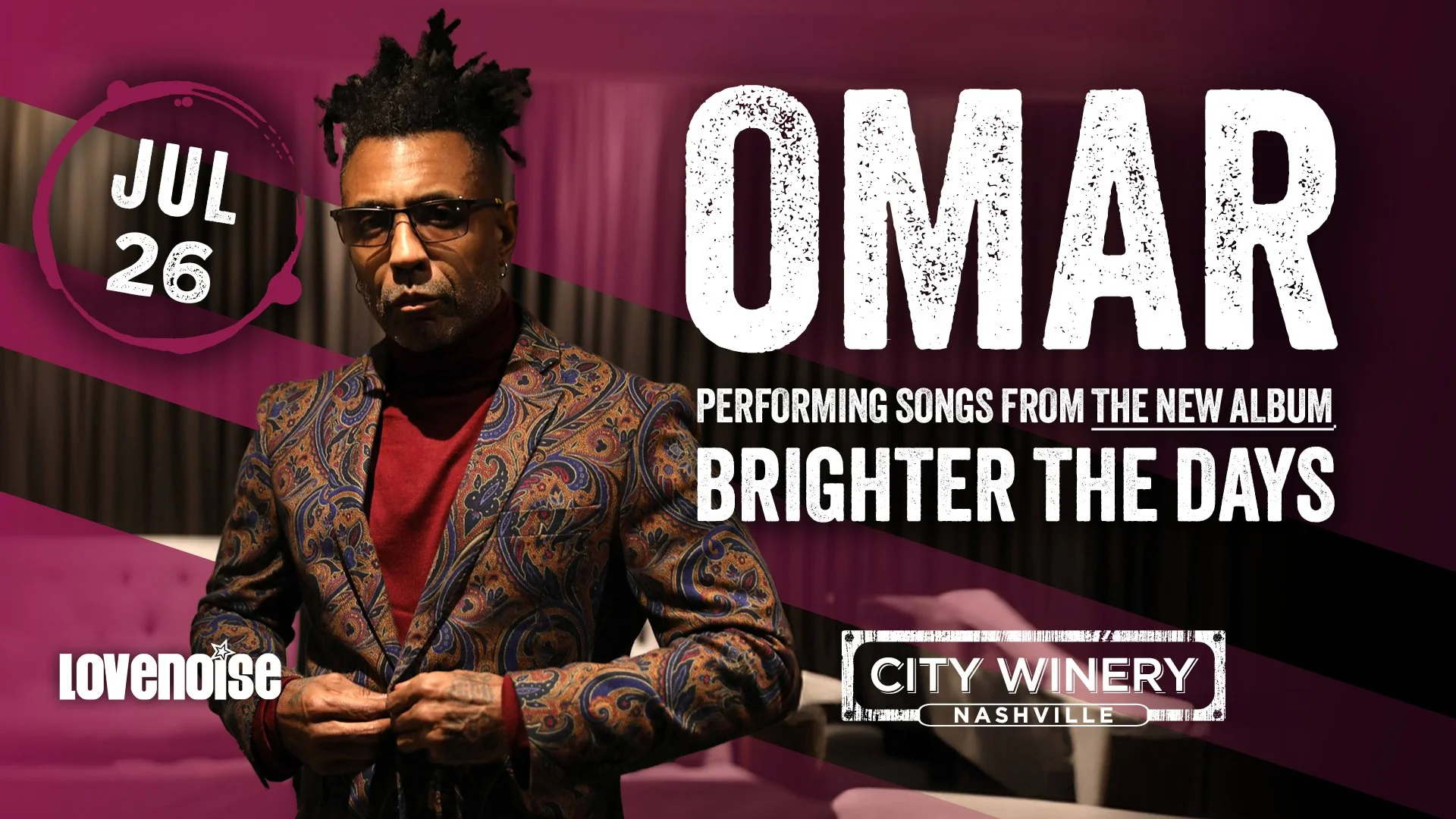 City Winery Nashville & Lovenoise presents Omar on July 26th at 7:30 PM!
